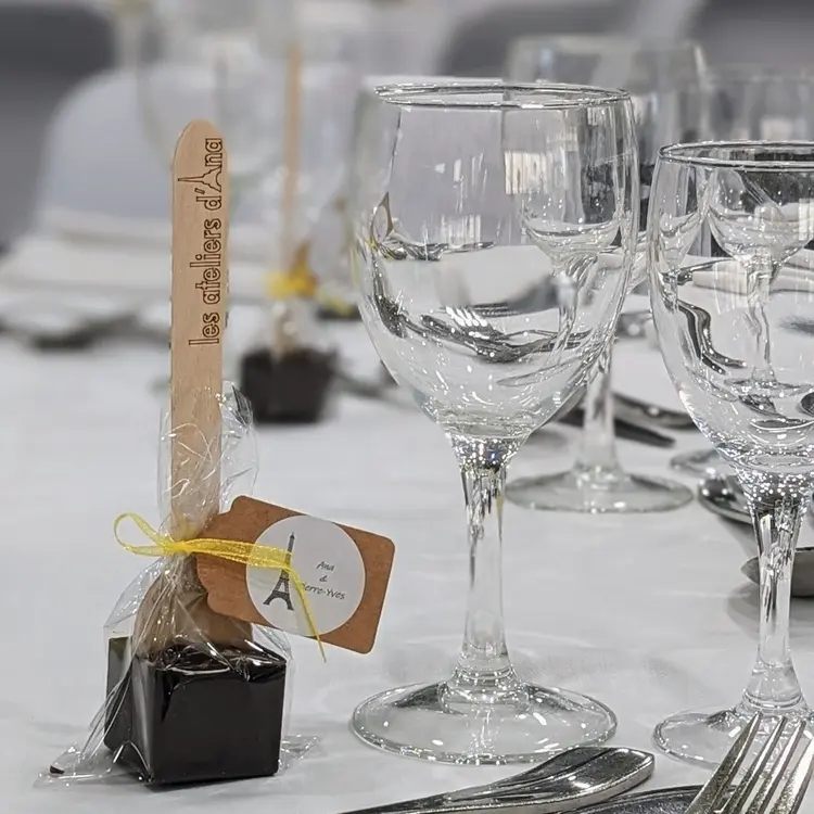 Cadeaux à petits prix et indispensables pour remercier vos invités pour leur présence à votre mariage, votre repas d'affaire, congrès, séminaire. Des chocolats personnalisés à votre image.